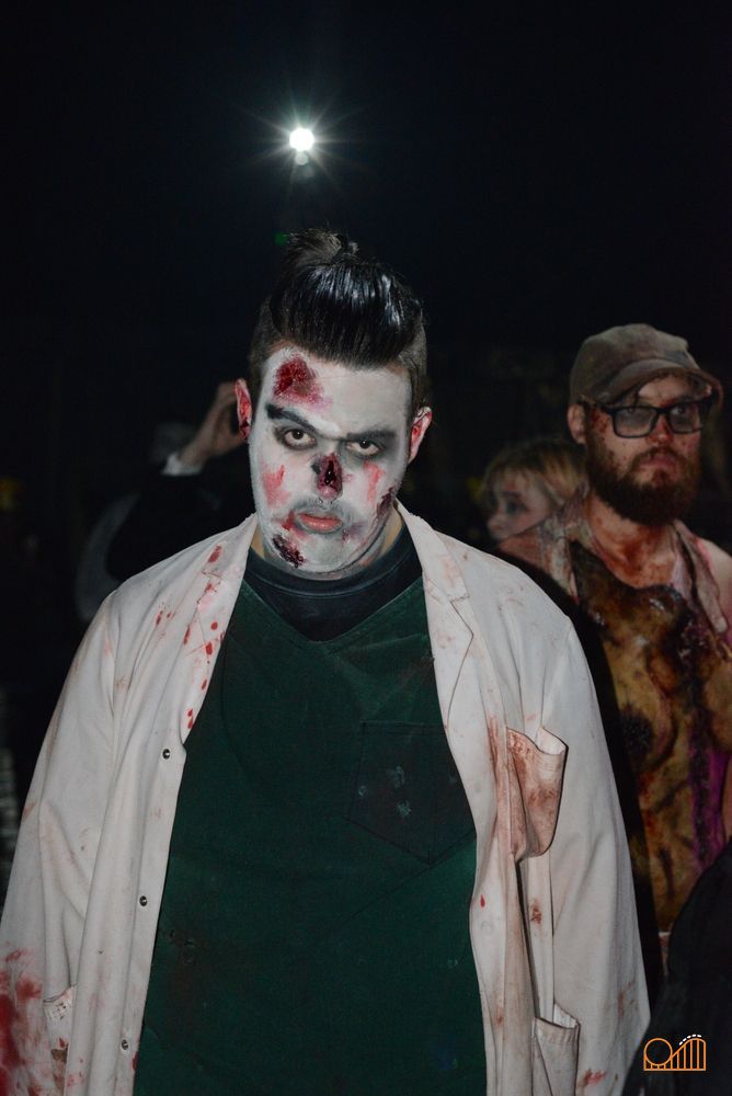 The finale of the scare maze has the entire cast of actors converge on each group trapped in one space. We've never seen this done before, and we were completely outnumbered by the zombie horde!