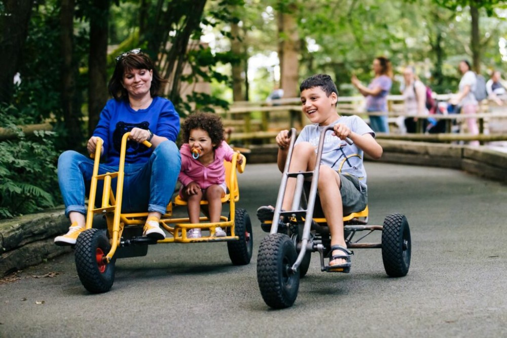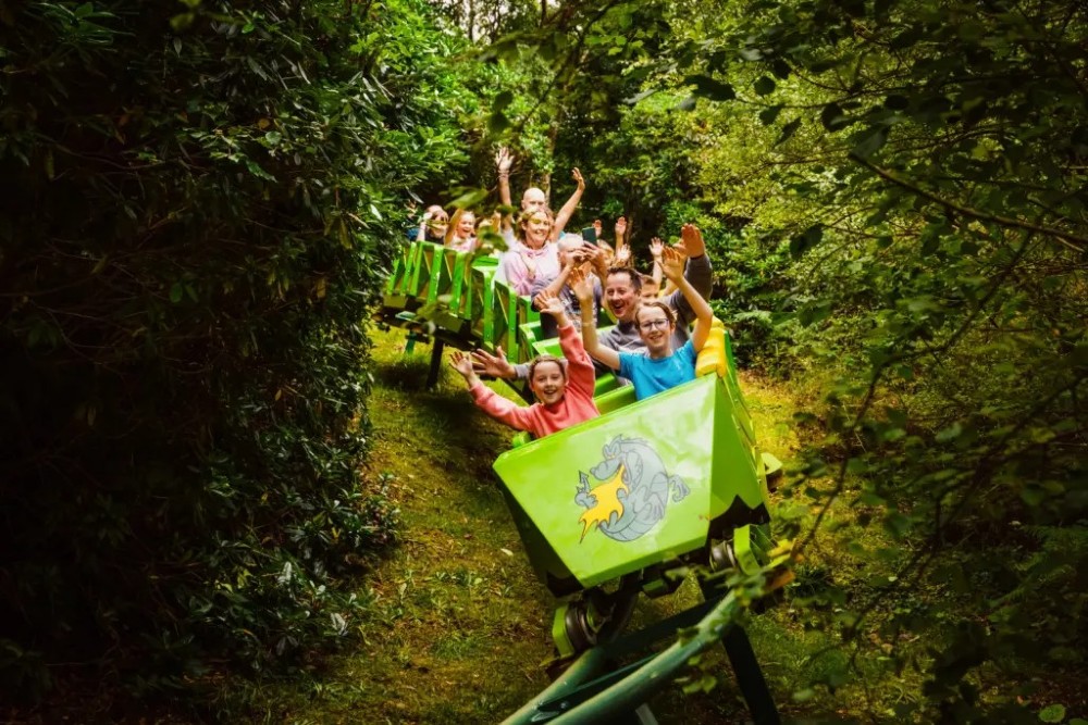 Take a ride on the unique Green Dragon Family Roller Coaster, the world’s only people powered coaster. In your 20-person, five car train travel along a 250 metre track, including a 360 degree horizontal loop round the hill and through the woods.
